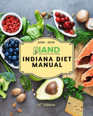 The Indiana Academy of Nutrition and Dietetics Diet Manual Committee reviews and revises the manual every 5 years. Each time an effort is made to include the most current information available at the time of publication. The framework of the Academy of Nutrition and Dietetics and Nutrition Care Process are used as the basis for the manual’s organization. The Indiana Diet Manual is available in two formats for your ease of use.